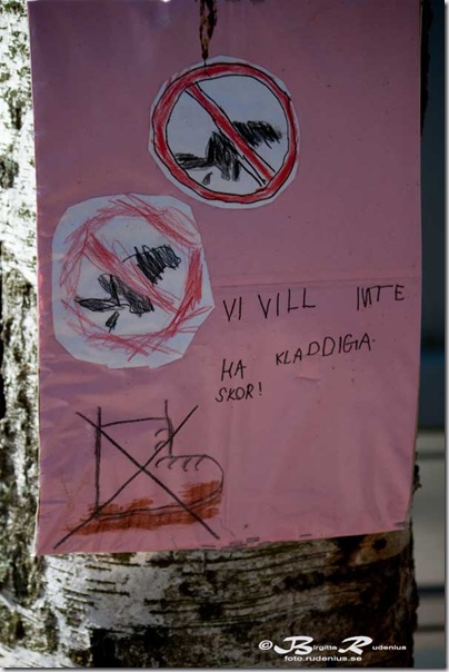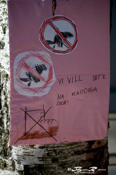 I found this sign outside a preschool. The sign says: “We do not want sticky shoes!”